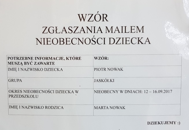 W razie nieobecności dziecka należy to odpowiednio wcześnie zgłosić!
